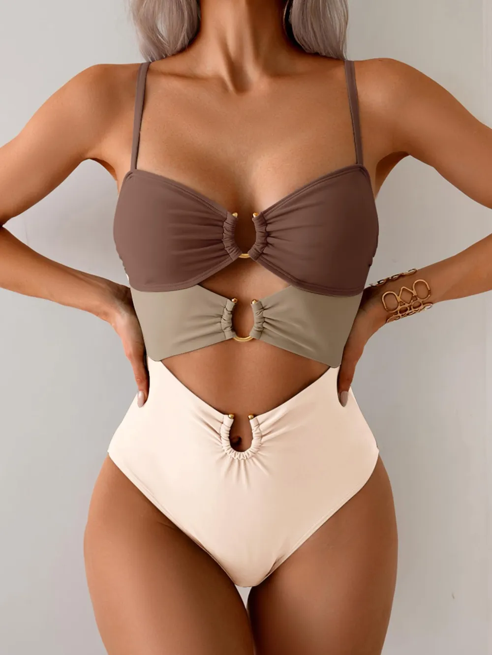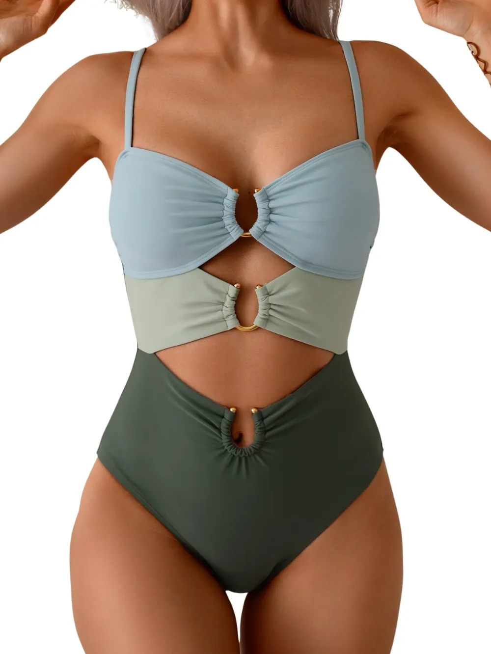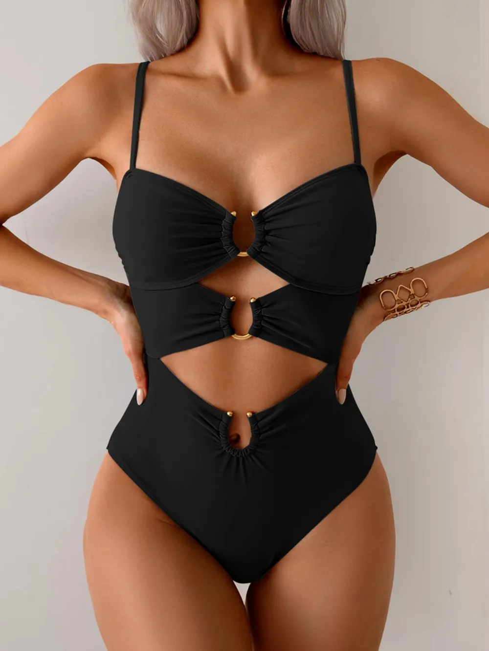 • One Piece Swimsuit Ring Linked Monokini Sexy Bathing Suit Cutout Swim Suit