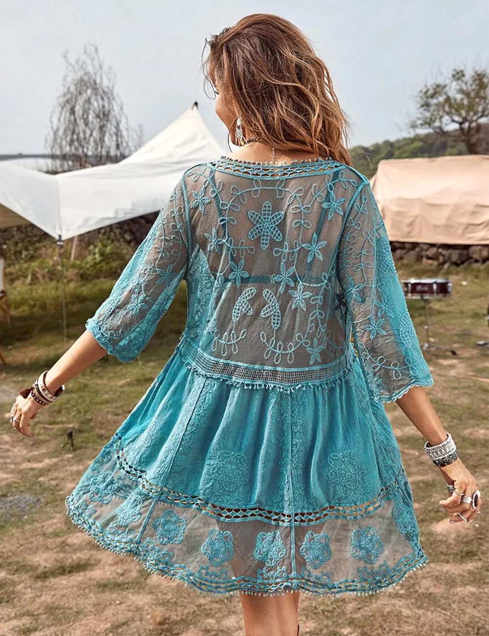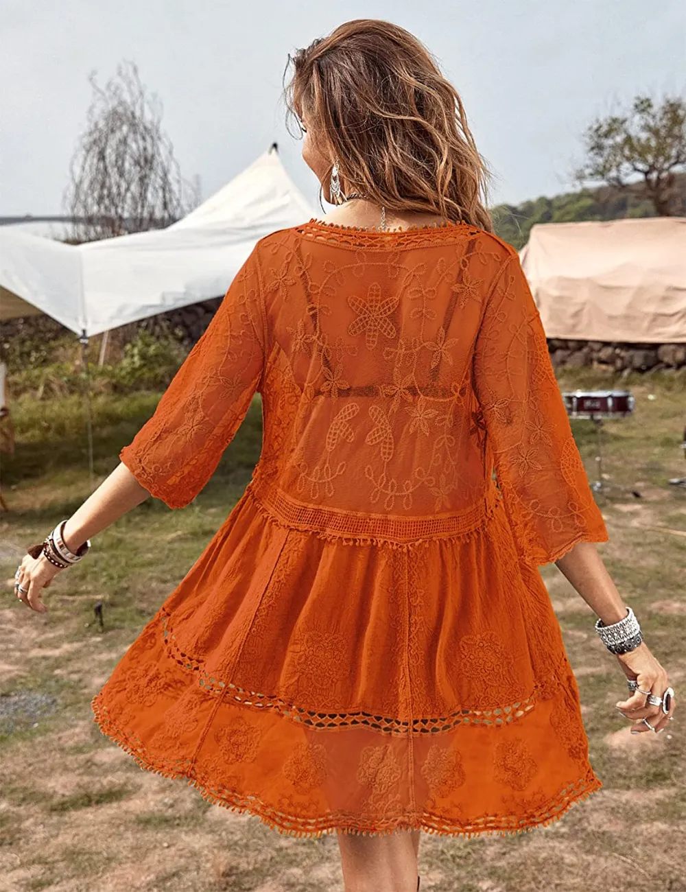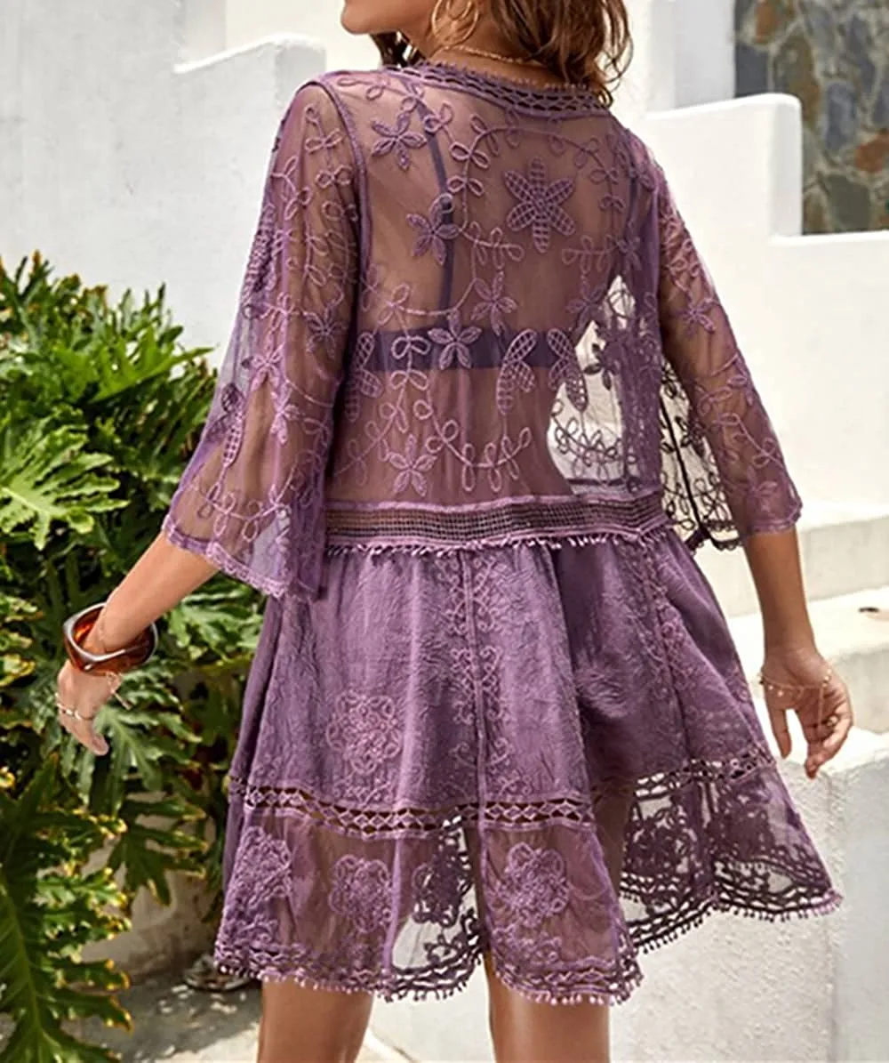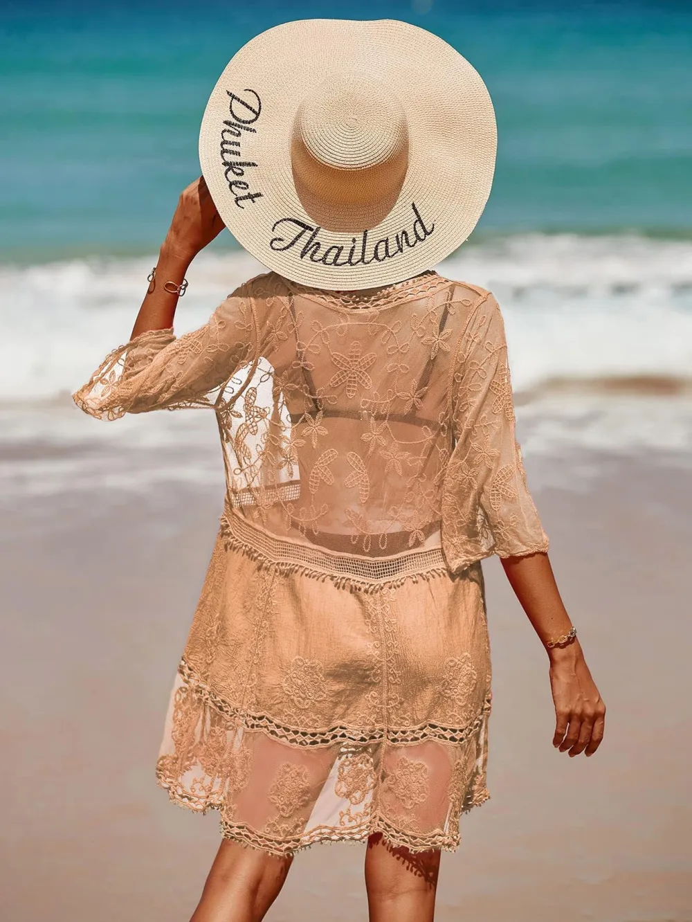 Women's Contrast Lace Bathing Suit Cover Up V-Neck Swimsuit Coverups Loose Swimwear Beach Dress Beachwear