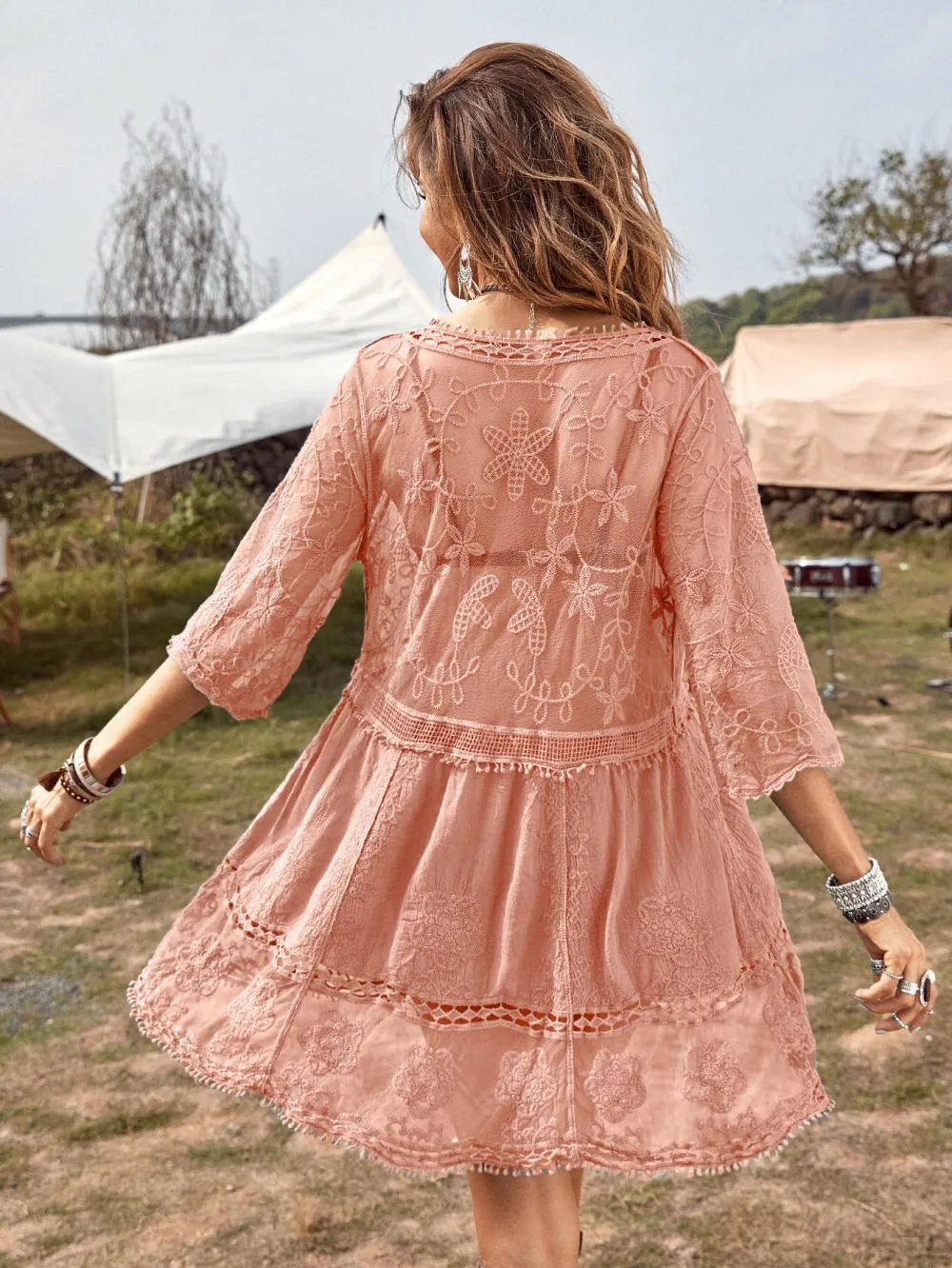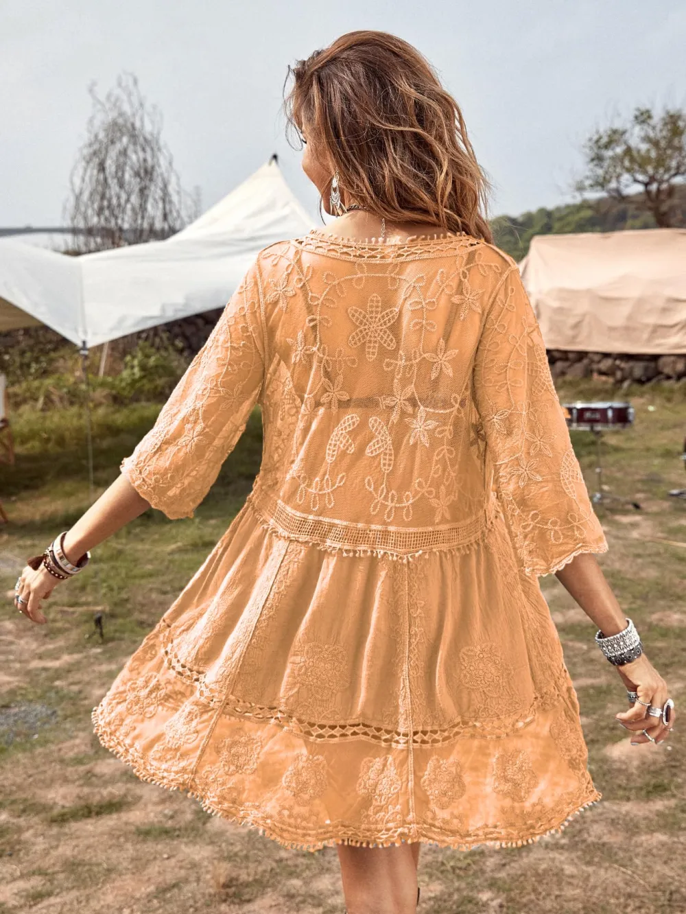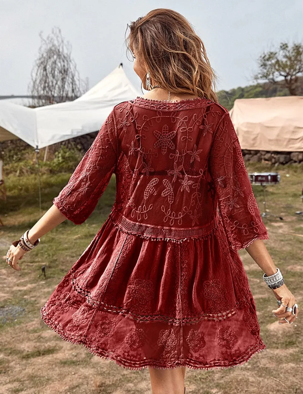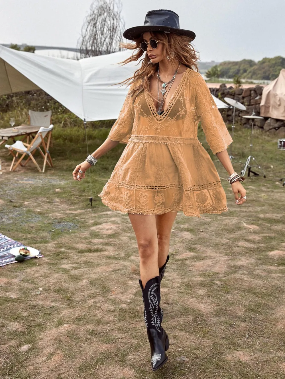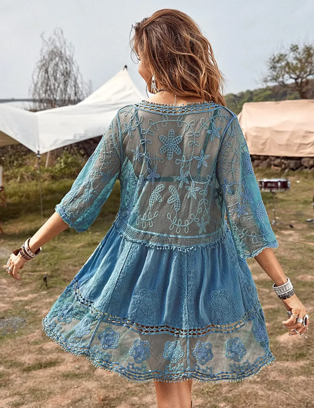 Women's Contrast Lace Bathing Suit Cover Up V-Neck Swimsuit Coverups Loose Swimwear Beach Dress Beachwear