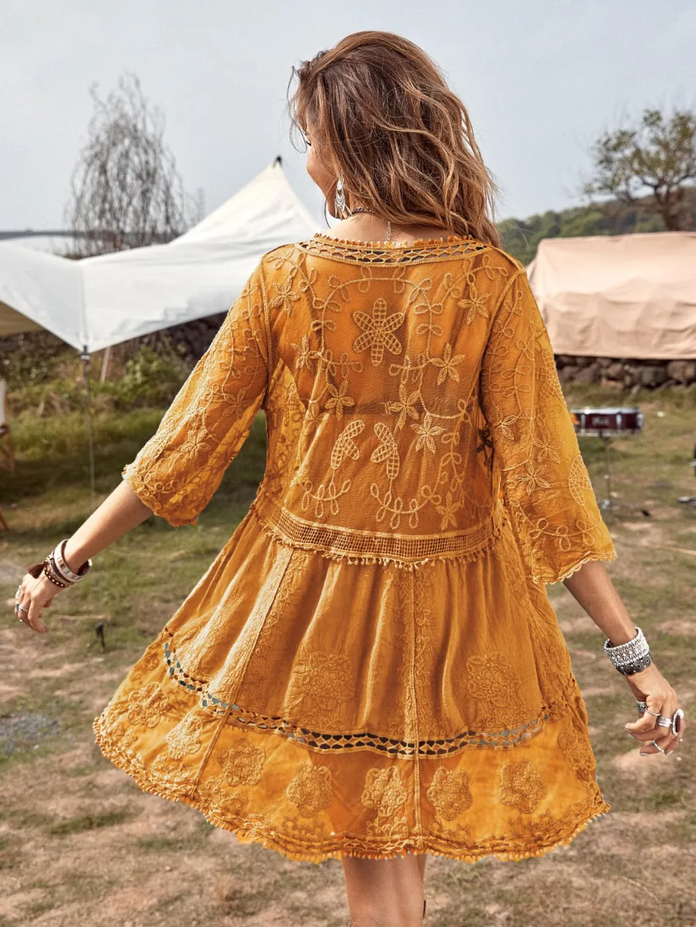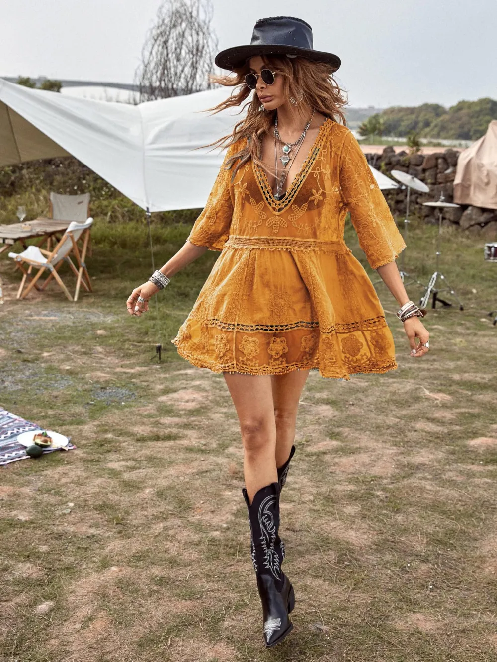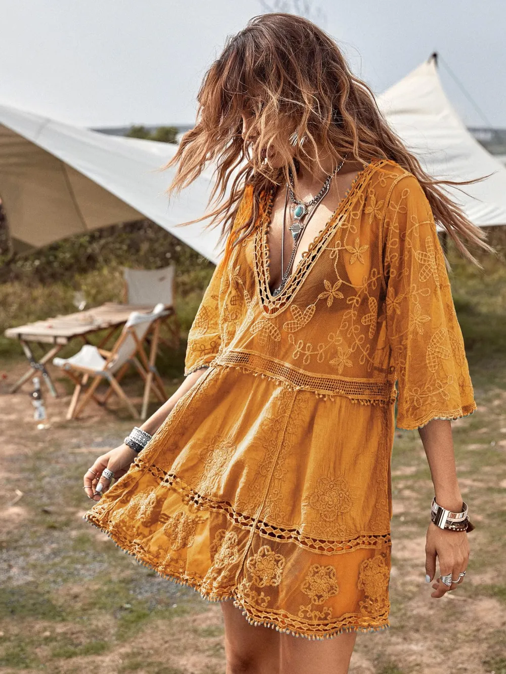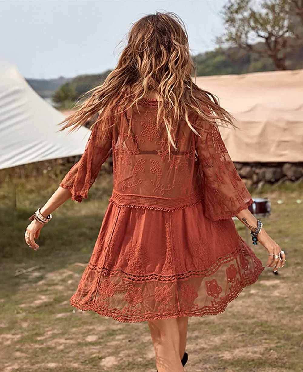 Women's Contrast Lace Bathing Suit Cover Up V-Neck Swimsuit Coverups Loose Swimwear Beach Dress Beachwear