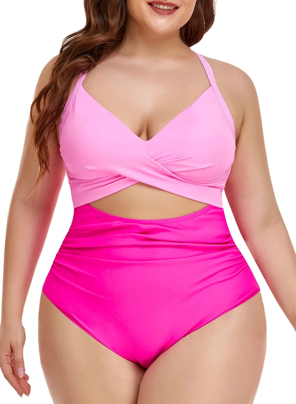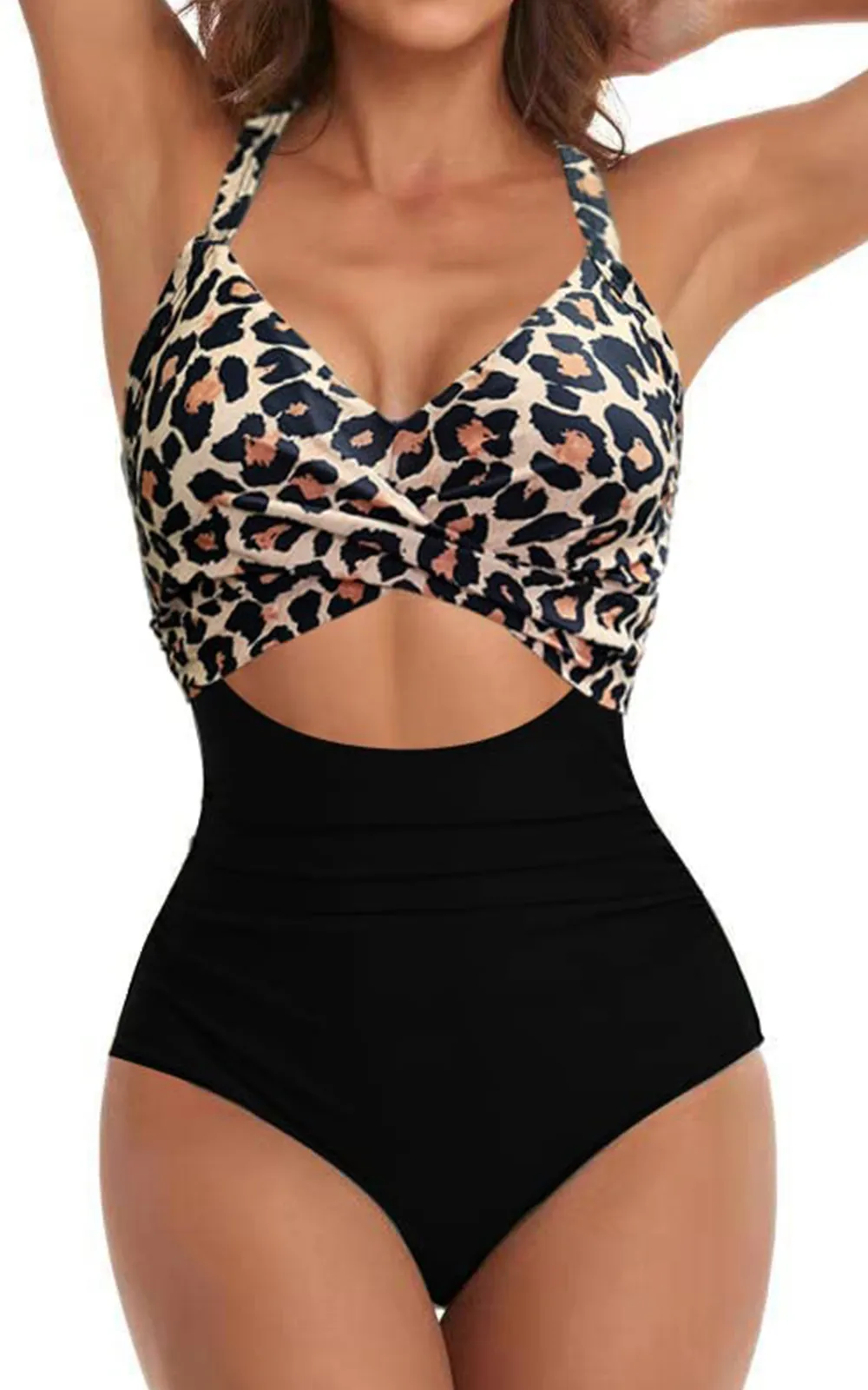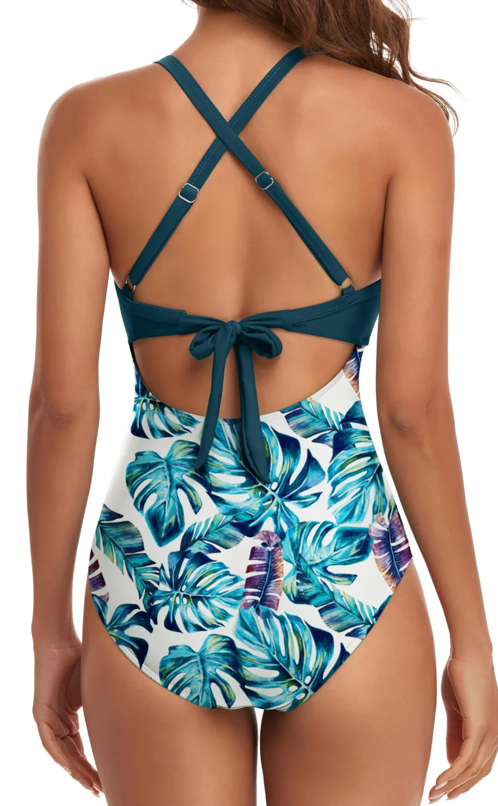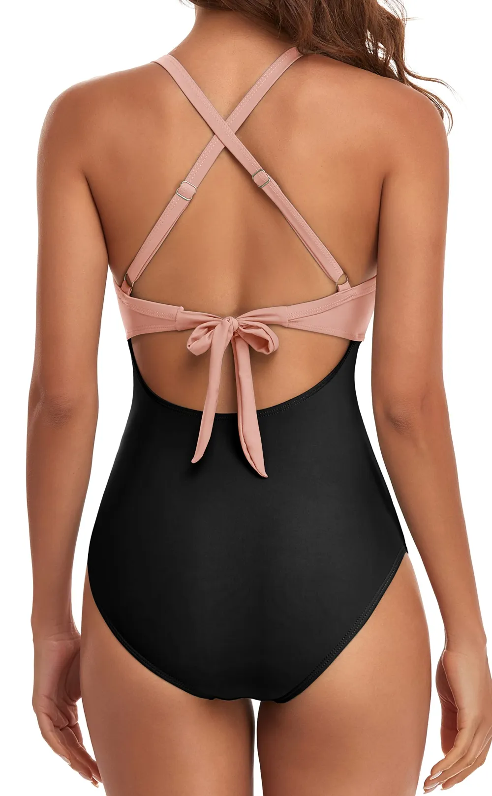 Women's One Piece Swimsuits Tummy Control Cutout High Waisted Bathing Suit Wrap Tie Back 1 Piece Swimsuit
