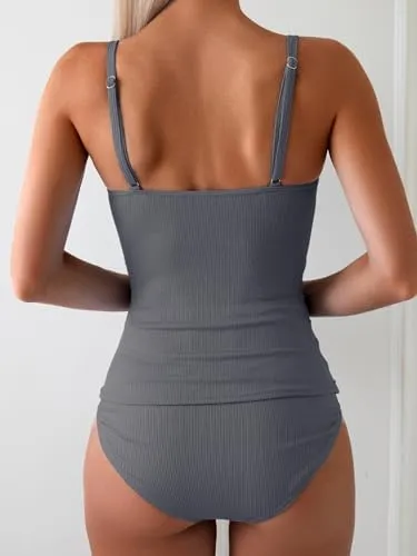 Women's Swimsuit Ruched Tummy Control Tankini Set
