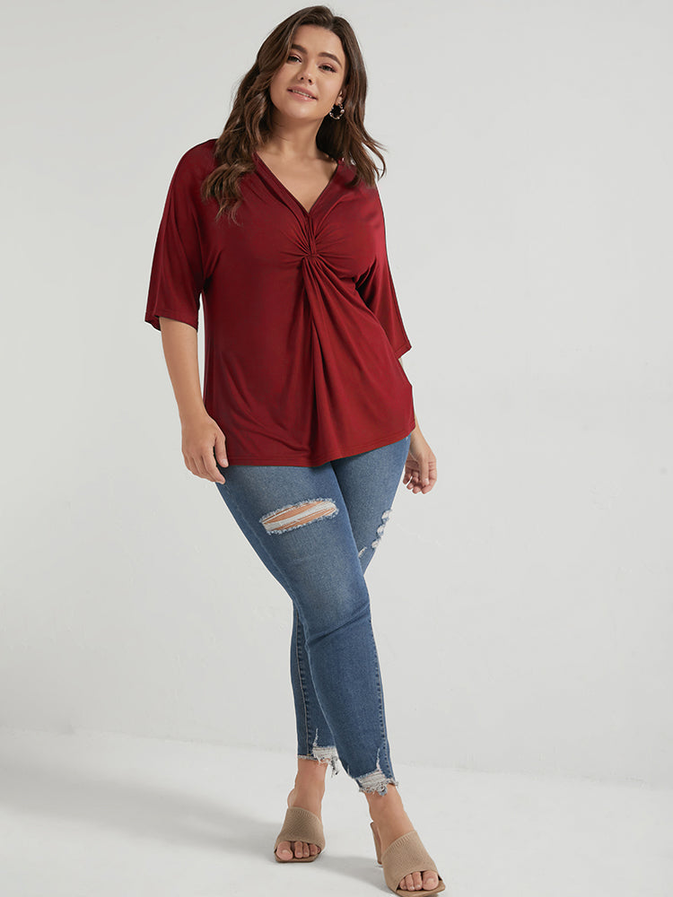 V Neck Modal Twist Front T-shirt