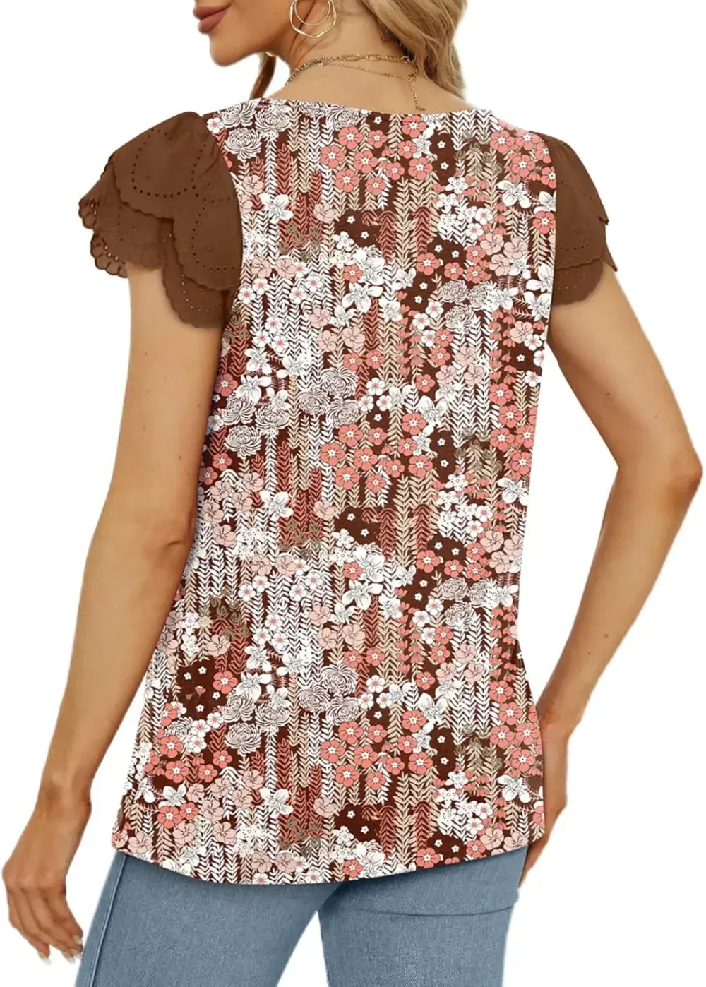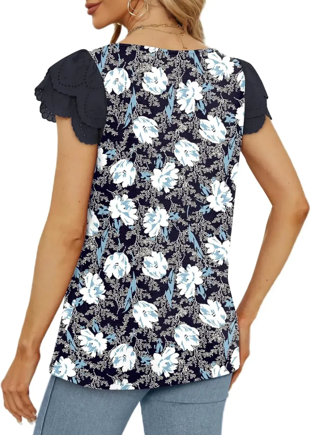 Eytino Womens Plus Size Tops Ruffle Short Sleeve Square Neck Summer Loose Casual Tee Shirts(1X-5X)